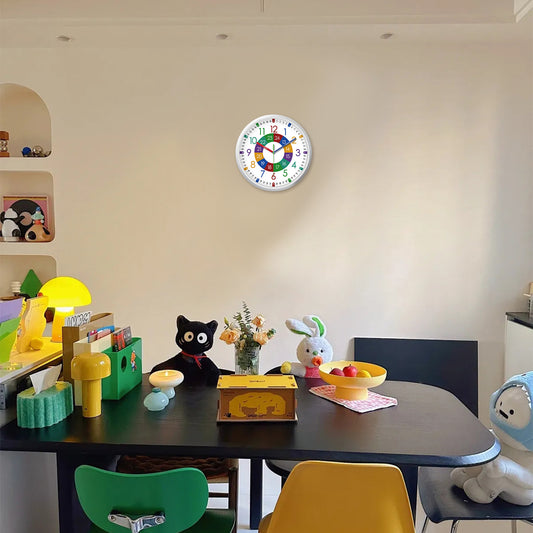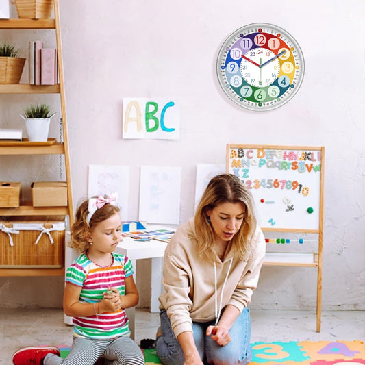 Kids Wall Clocks Battery Operated Silent Non Ticking Colorful Modern Time Teaching Wall Clock for Nursery Kids Room Classroom Decor