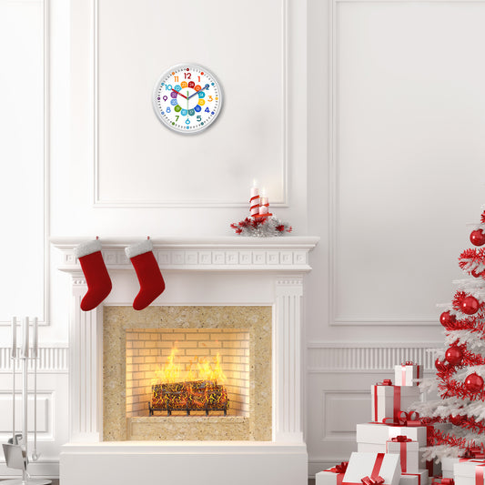 8-Inch Kids Learning Wall Clock Colorful Christmas Gifts Analog Silent Non-Ticking Battery Operated for Bedroom, Living Room, School Classroom