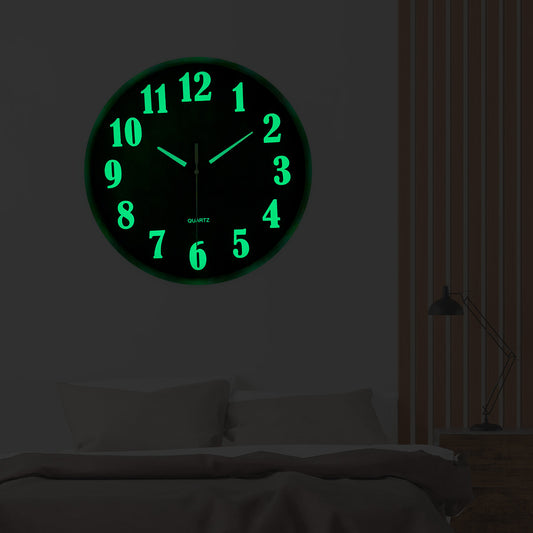 Glow in The Dark Clock 16 Inch Wall Clocks Silent Non-Ticking Battery Operated - Analog Small Classic for Bathroom, Kitchen, Living Room