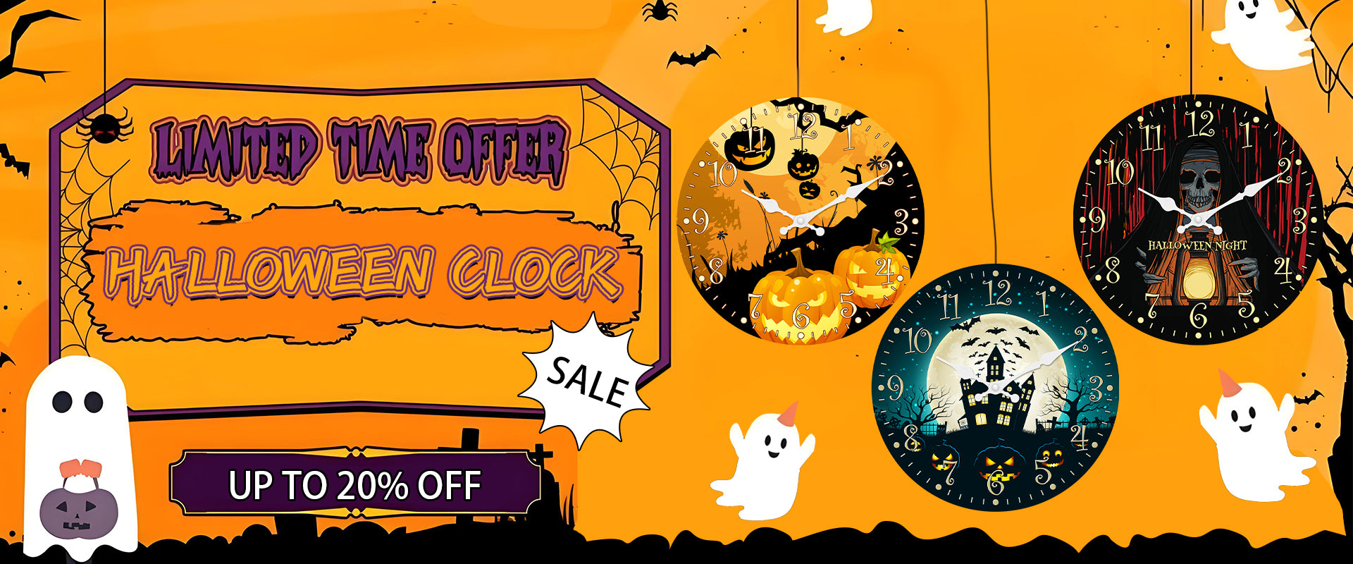 Halloween Wall Clock Pumpkin Party Decoration Clock Silent Non Ticking Battery Operated for Bedroom Kitchen Living Room School