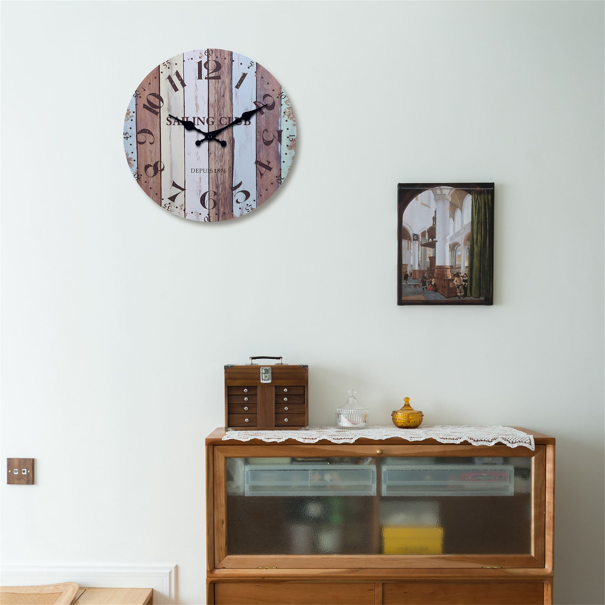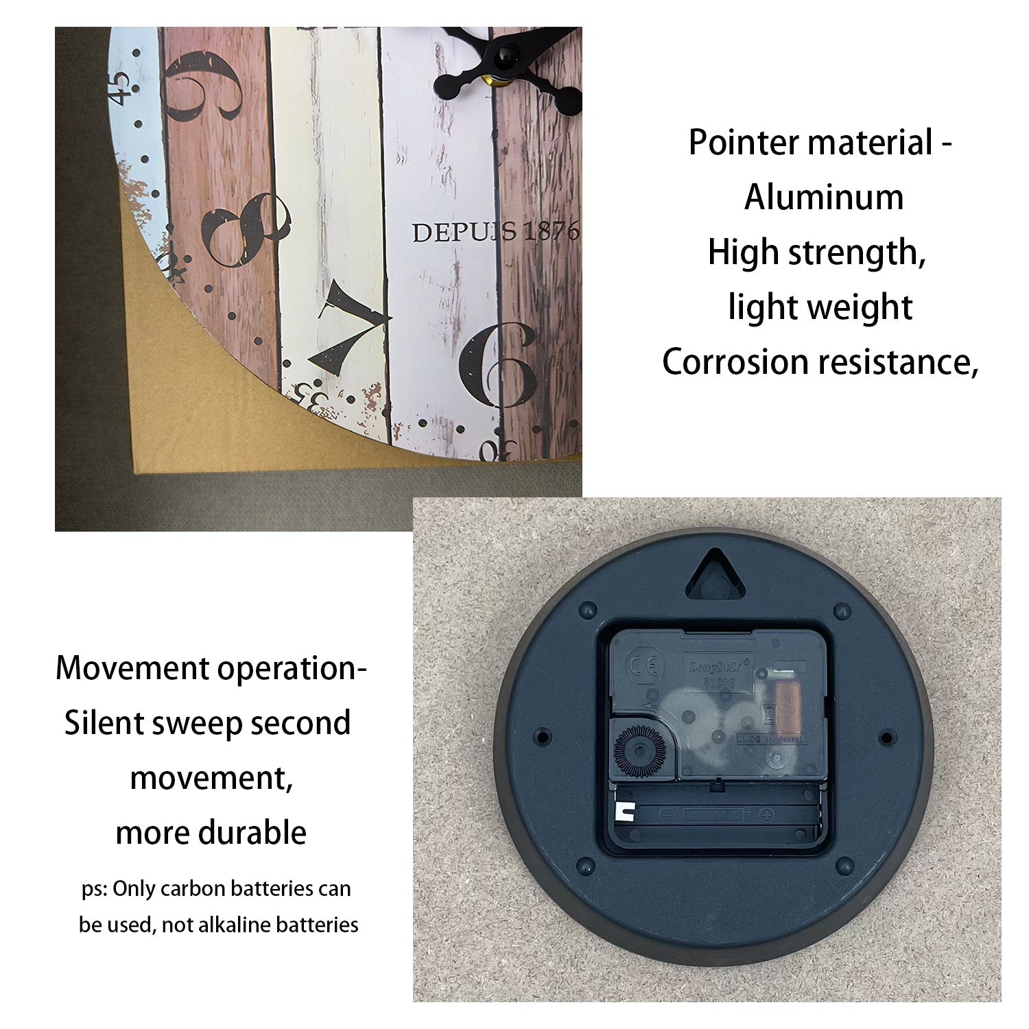 Rustic Decorative Wall Clocks 14 Inchs Battery Operated Non-ticking Farmhouse Clocks for Livingroom