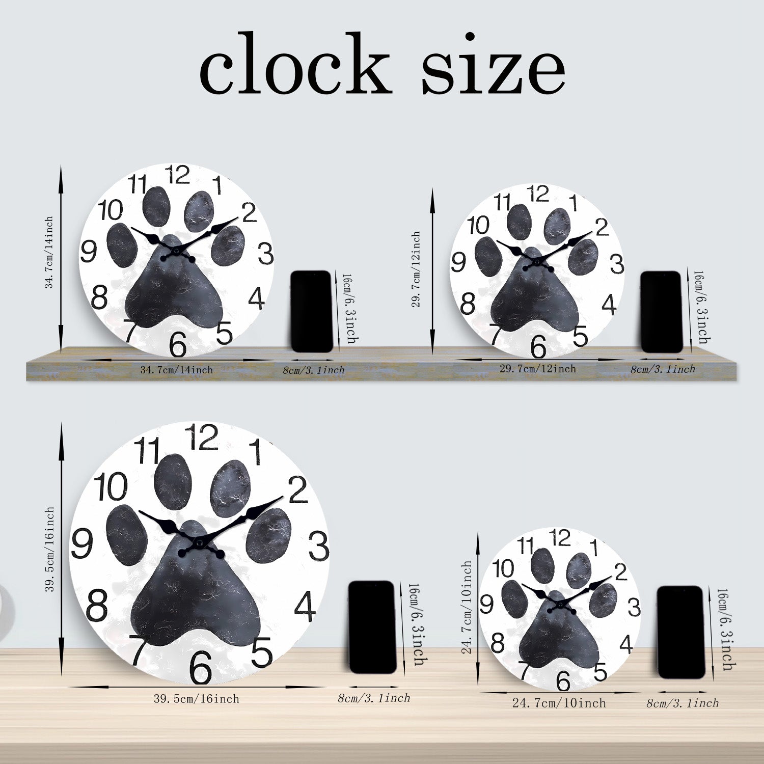 Orologio da parete in MDF con impronte di zampe di animali domestici in bianco e nero, orologio da parete a batteria senza ticchettio per gatti