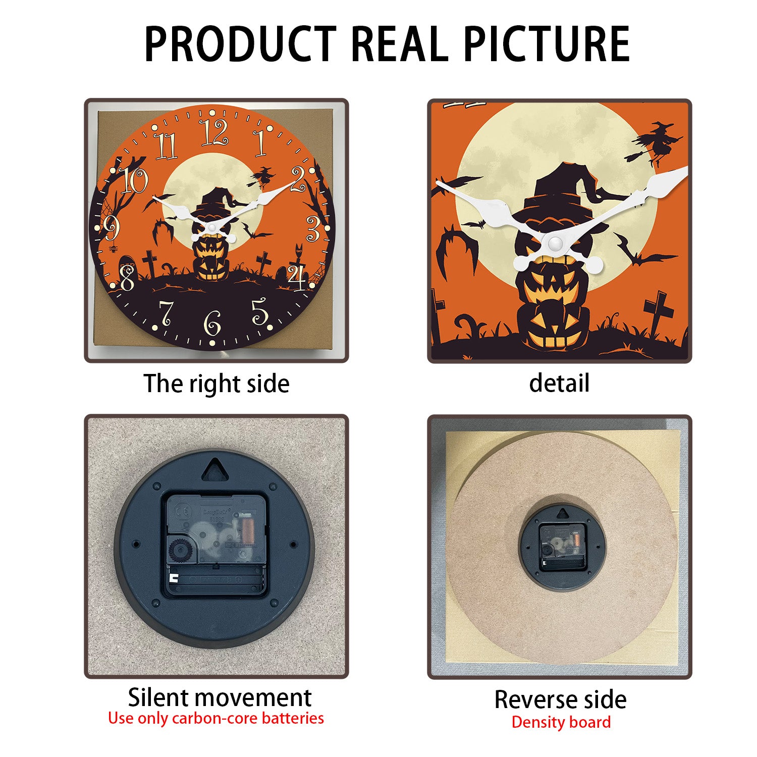 Orologio da parete per la notte di Halloween, decorazione autunnale con zucca, orologio senza ticchettio, decorativo per camera da letto, cucina, soggiorno, scuola