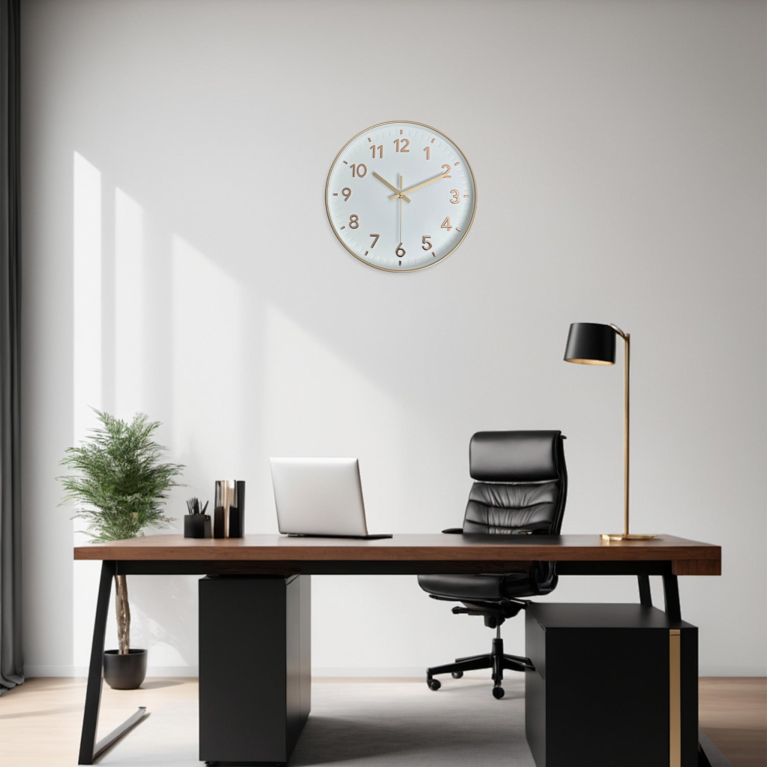 Featuring a sleek aluminum frame in soft rose gold, this 12-inch analog clock adds a refined warmth to any interior. Designed for quiet living, it brings both style and serenity to your wall — whether in the living room, bedroom, or workspace.