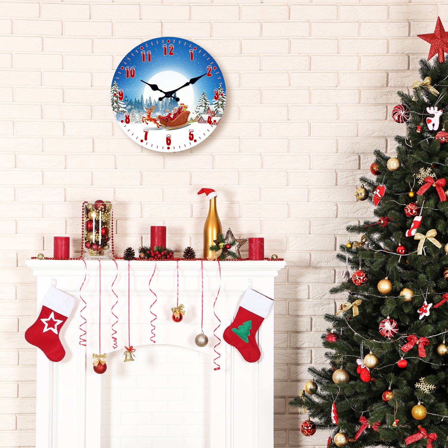 Christmas Wall Clock Christmas Decorations Santa Claus Silent Non-Ticking Battery Operated Indoor Home Decor Clearance