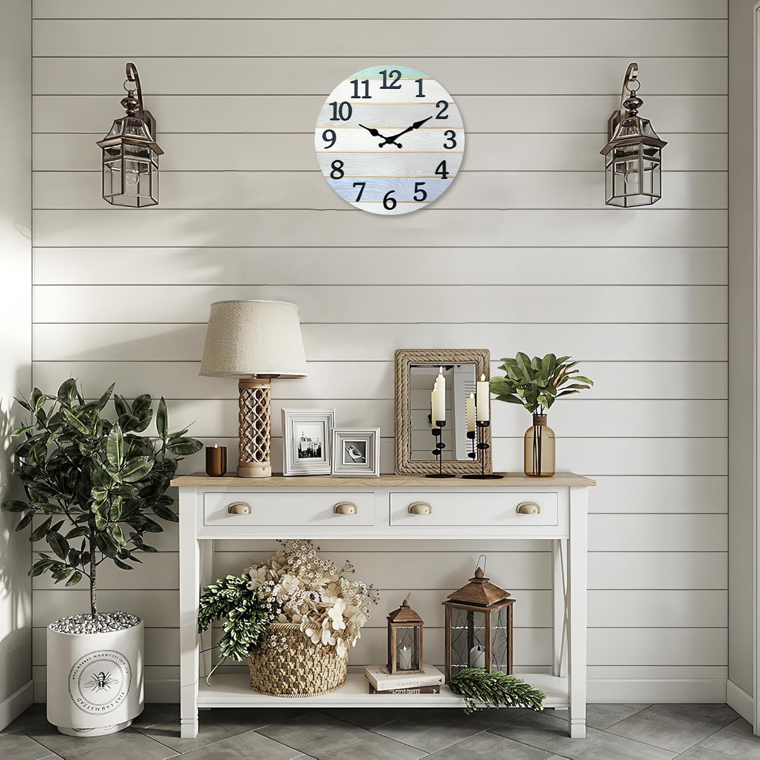 Constantplanet Wooden Wall Clock Silent Non-Ticking Movement Battery Operated Decorative Clock for Living Room, Bedroom, Kitchen