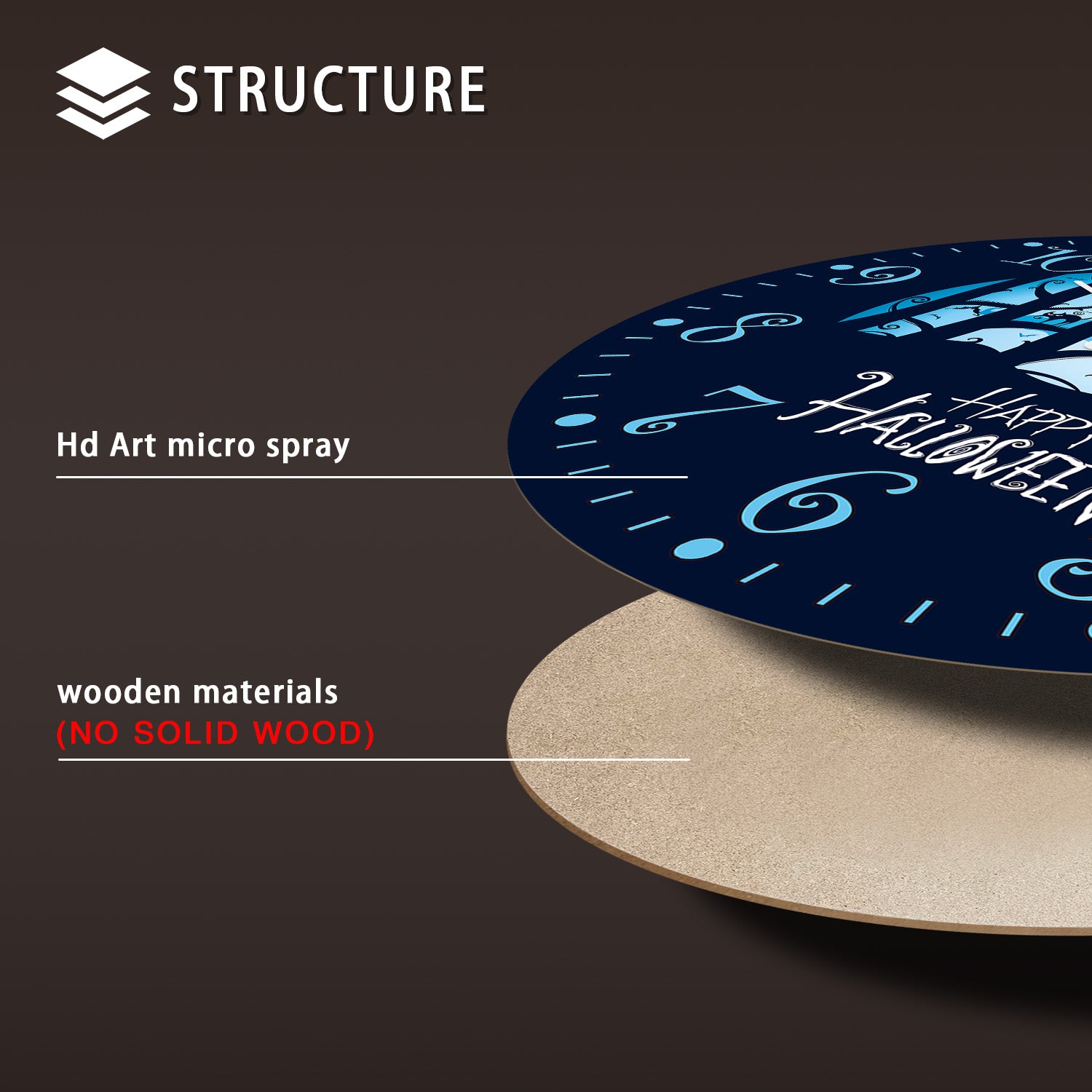 2. [Material] - This MDF wall clock features MDF and metal hands in bright, clear colors and a borderless design.