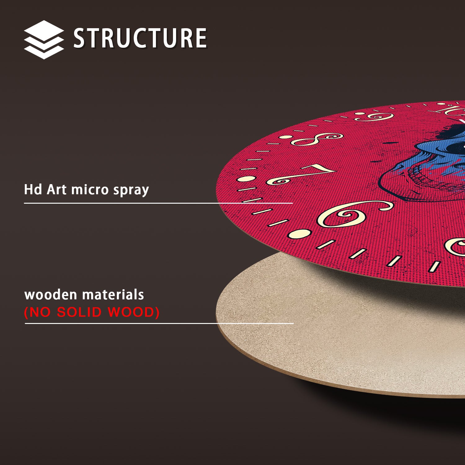 2. [Material] - This MDF wall clock features MDF and metal hands in bright, clear colors and a borderless design.