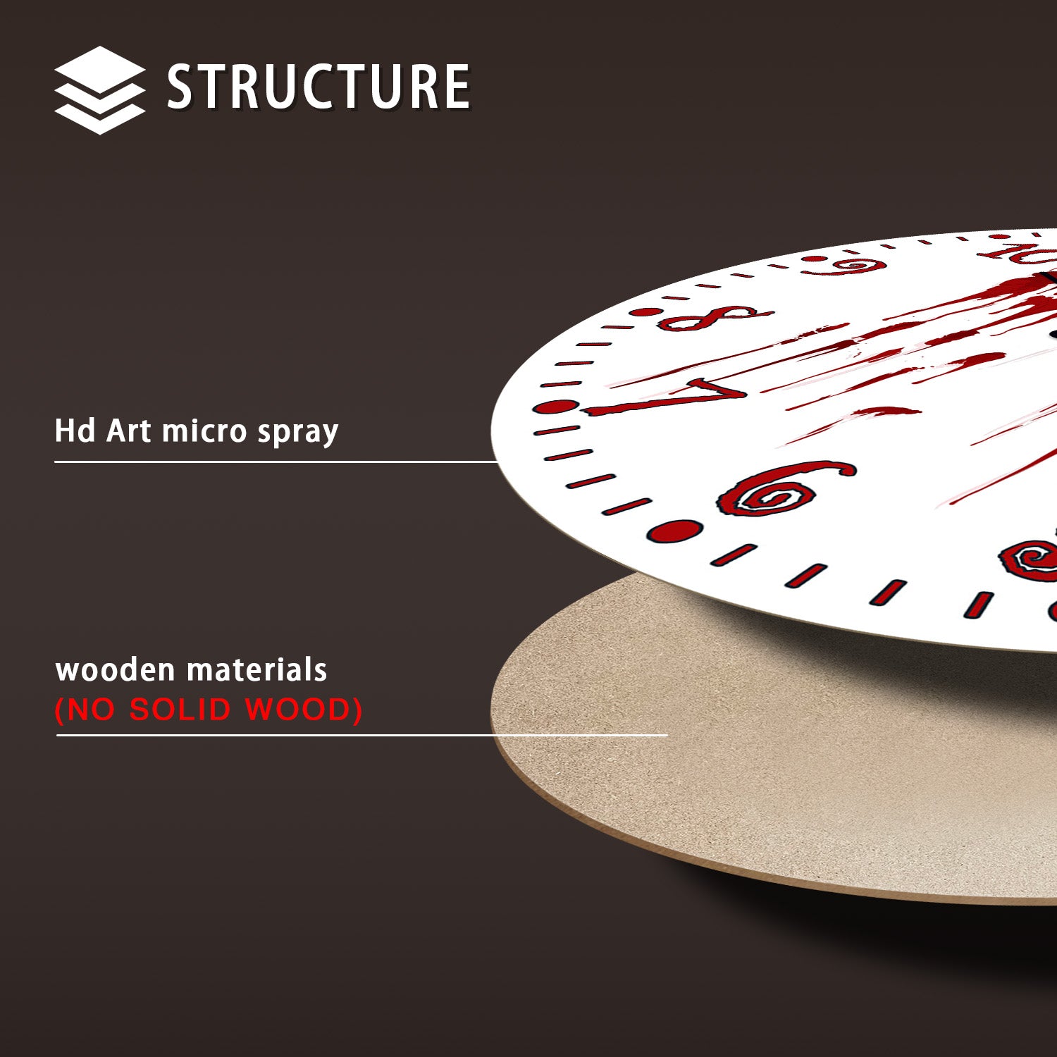 2. [Material] - This MDF wall clock features MDF and metal hands in bright, clear colors and a borderless design.