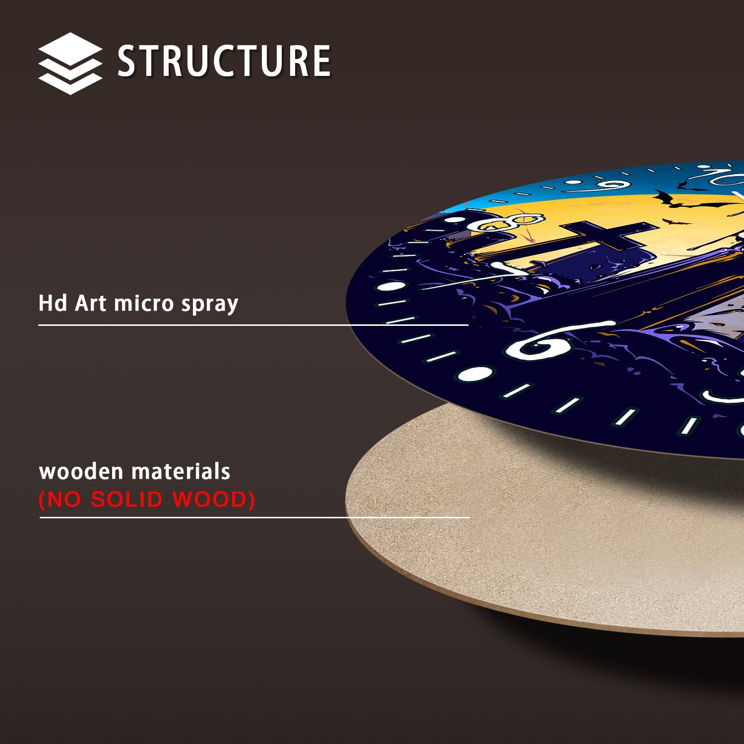2. [Material] - This MDF wall clock features MDF and metal hands in bright, clear colors and a borderless design.