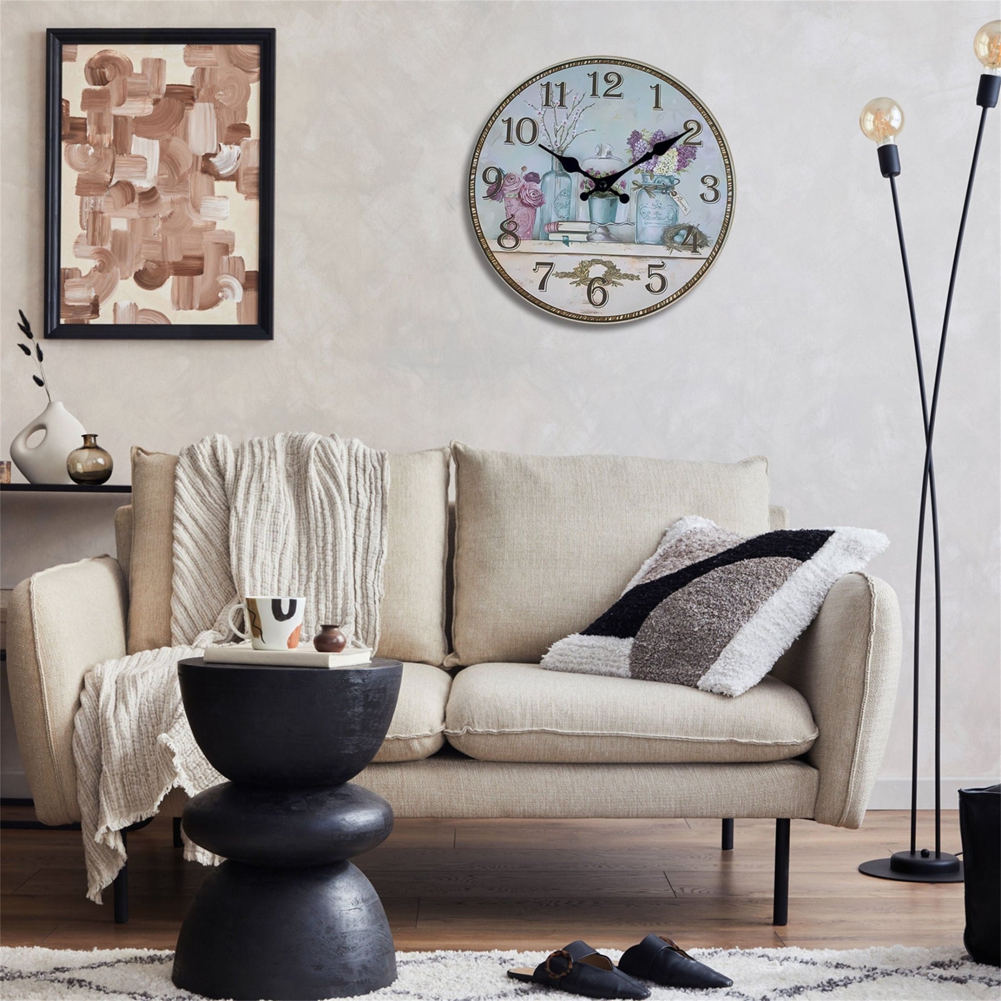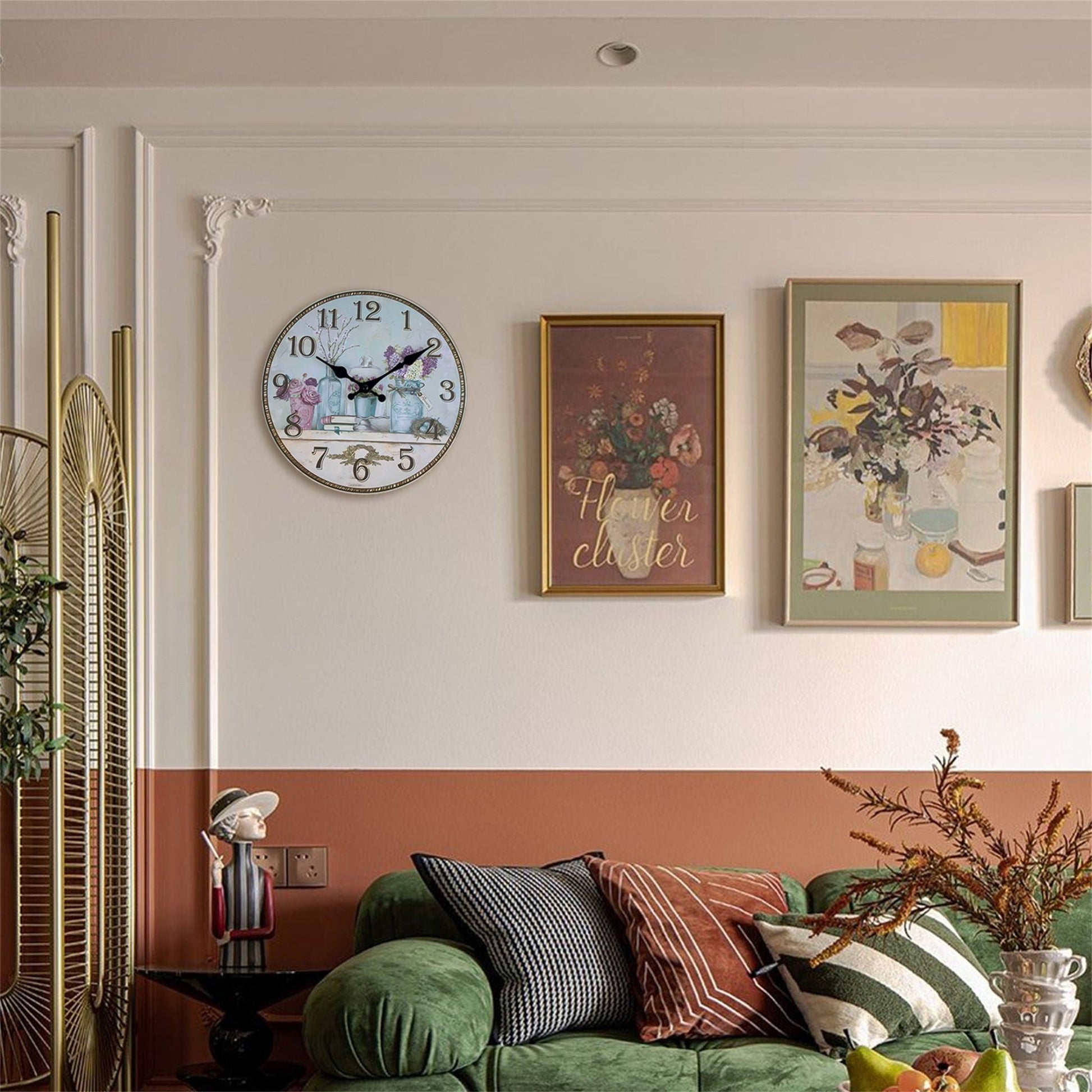 Lady's Vase Minimalist MDF Wall Clock – 10 Inch & 14 Inch Wall Clocks Battery Operated for Living Room Silent Non Ticking Wall Clock