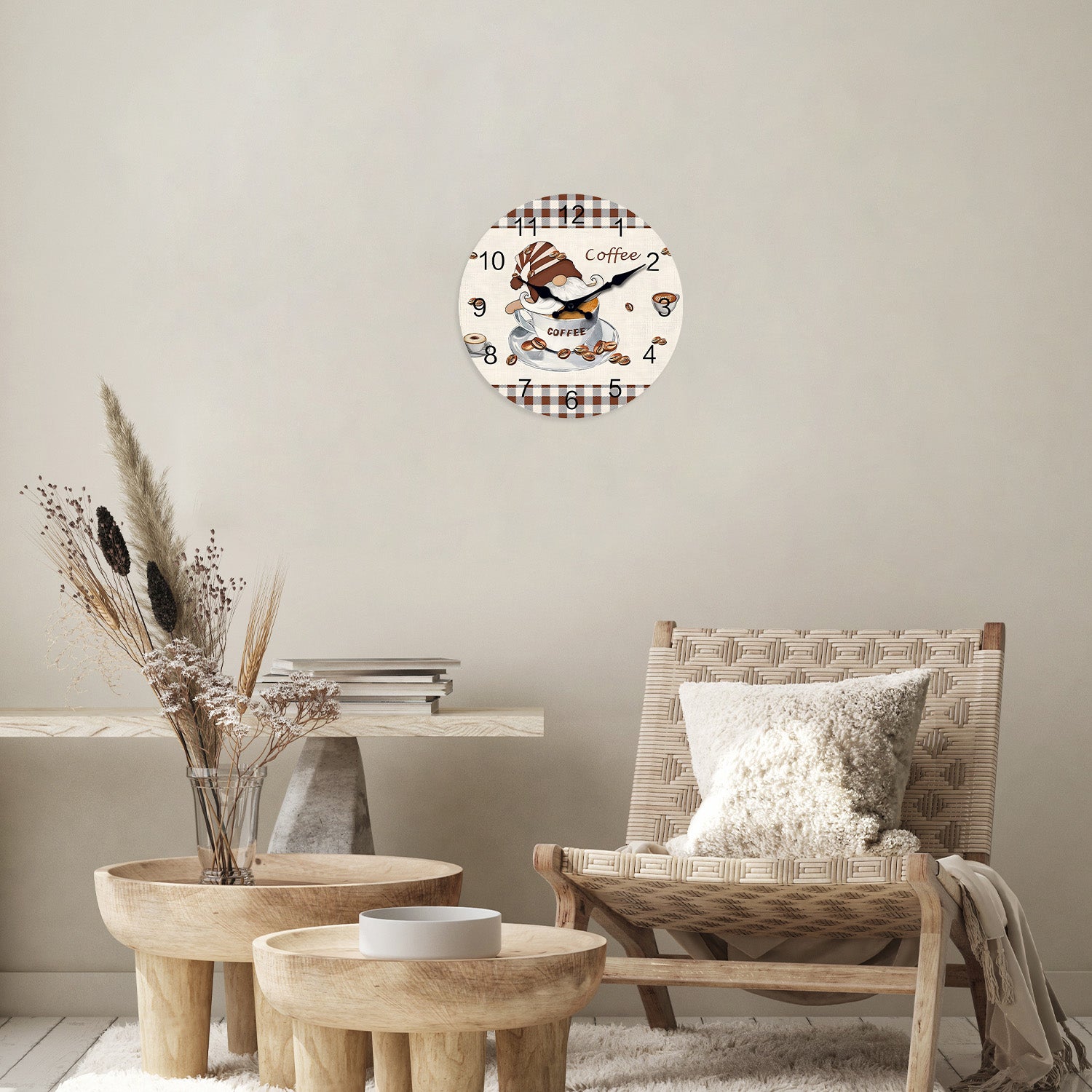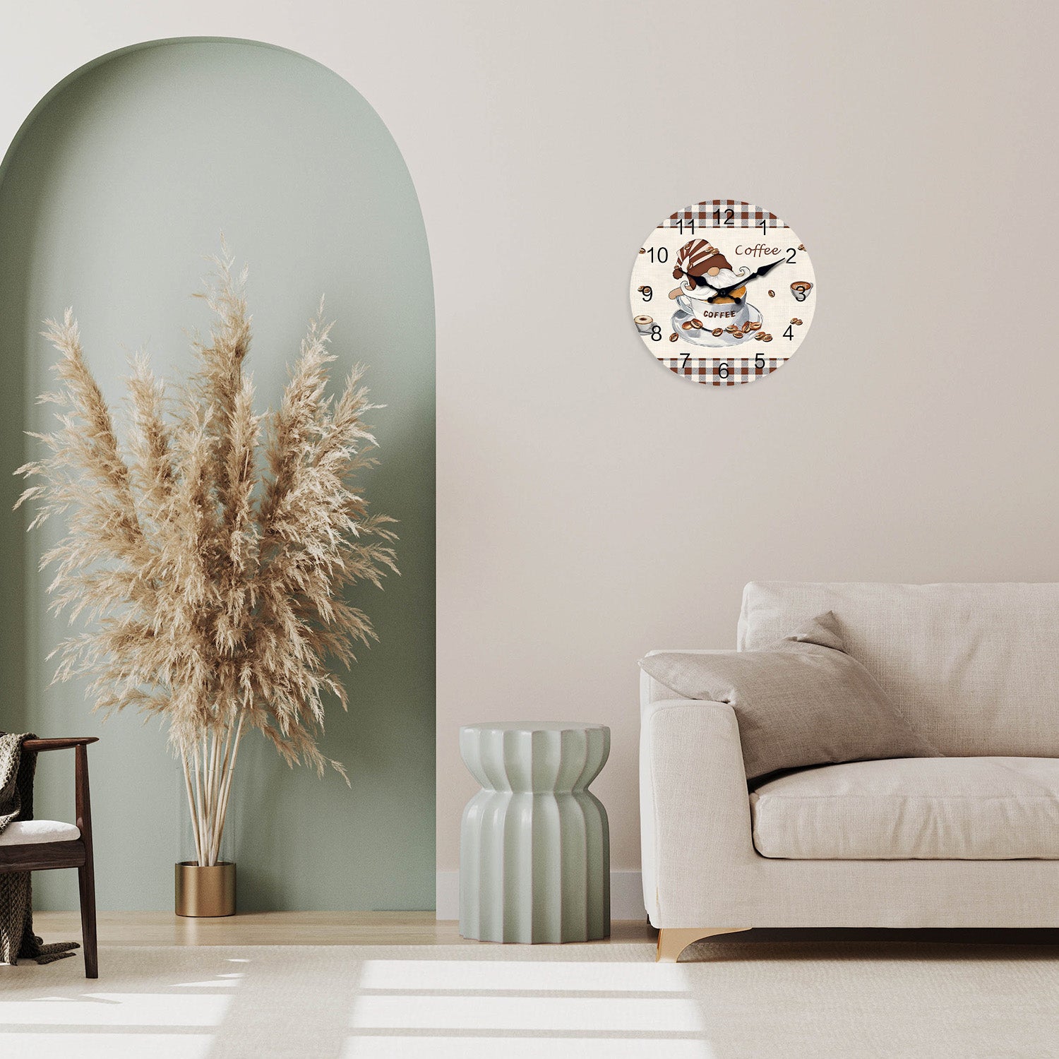 Red Retro Plaid Coffee Wall Clock Silent Wall Clock Non Ticking Battery Operated
