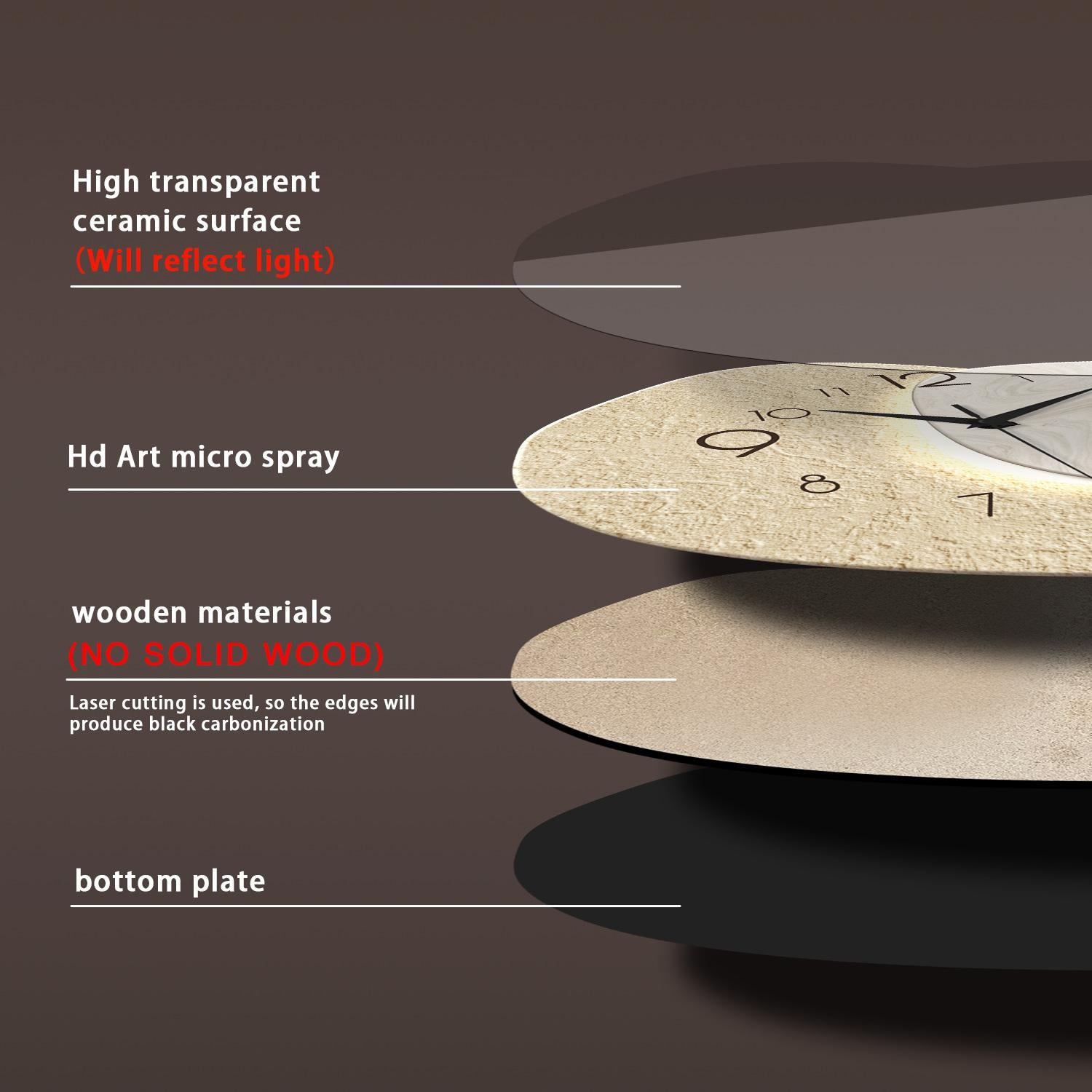 Silent Movement - Our high-quality quartz movement operates silently, without ticking, allowing you to enjoy a peaceful moment at home or at work.