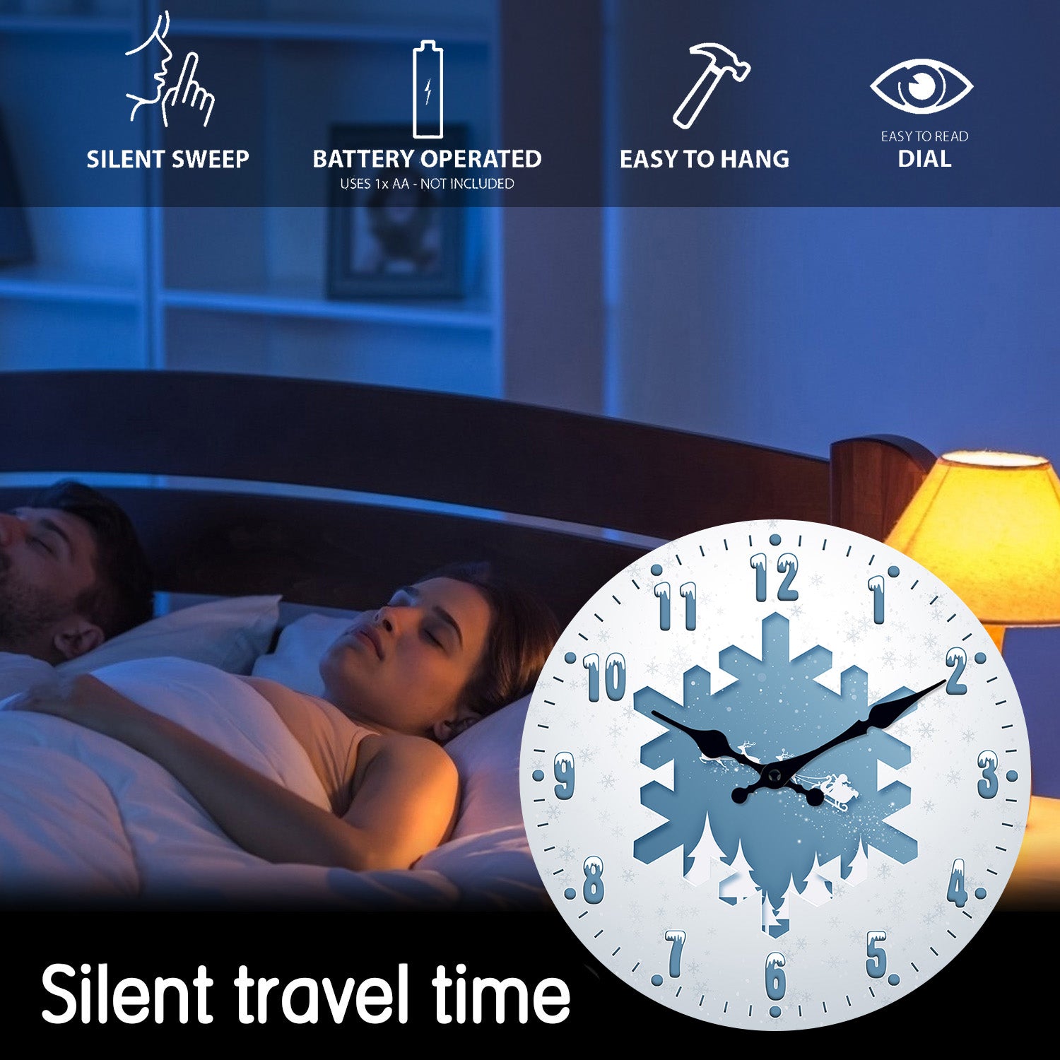 [Material] – Crafted from durable MDF with sleek metal hands, this wall clock features bright, festive prints and a clean, frameless design that complements any holiday décor.