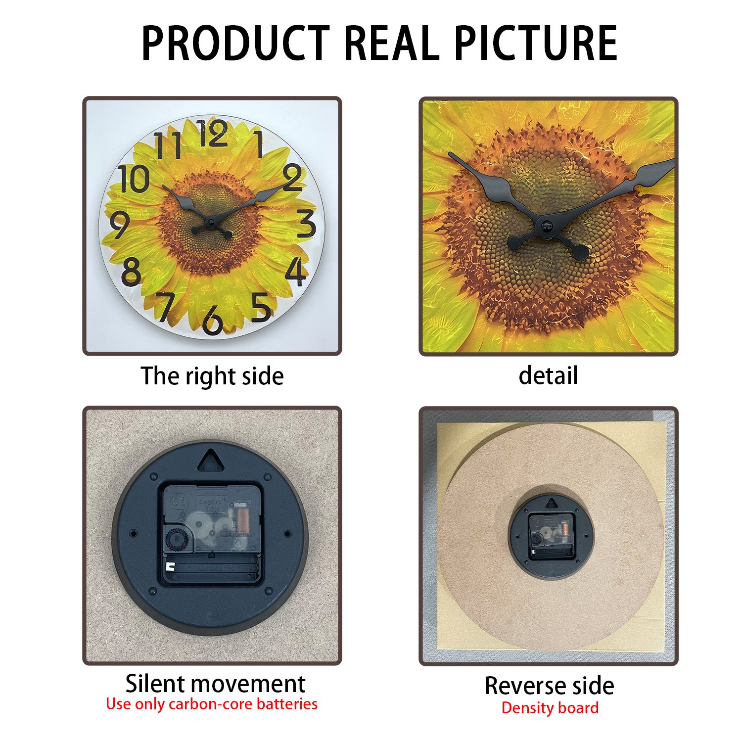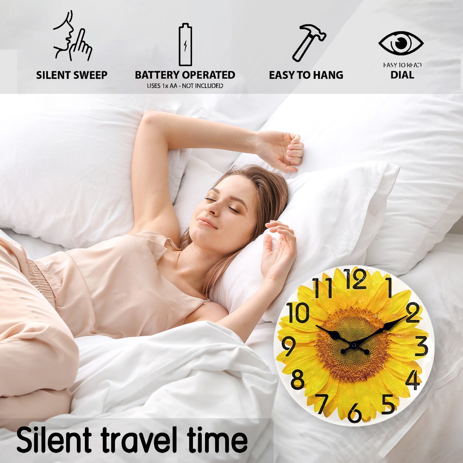 Sunflower Farmhouse Wall Clocks Battery Operated 10 Inch Silent Non Ticking Rustic Wall Clock