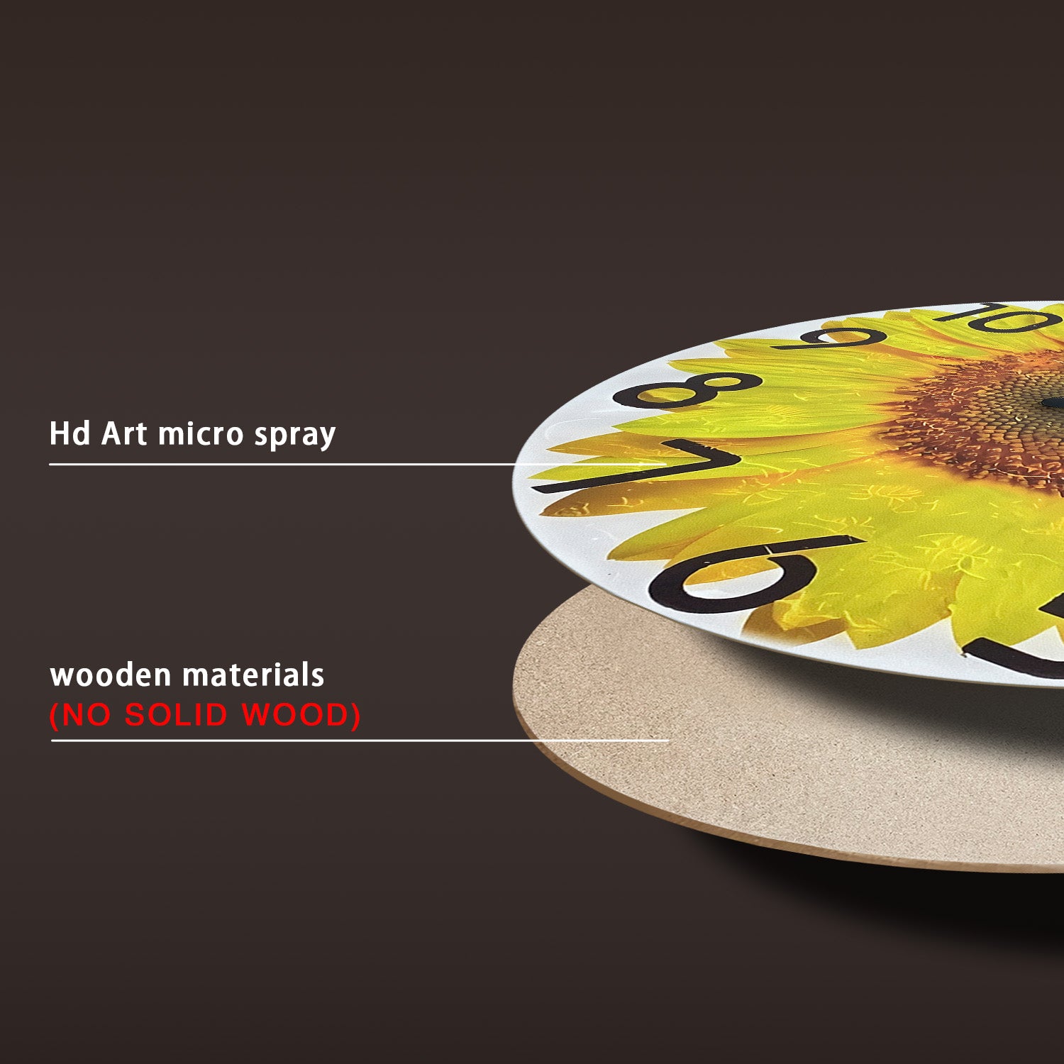 Bring the warmth of the countryside into your home with this Sunflower MDF Wall Clock. Crafted from durable MDF with a silent, non-ticking sweep movement, this clock ensures peaceful timekeeping while adding a rustic charm to your walls. Perfect for living rooms, kitchens, bedrooms, or farmhouse-style interiors, it’s both practical and decorative. Available in 10", 12", 14", and 16" sizes to fit any space.