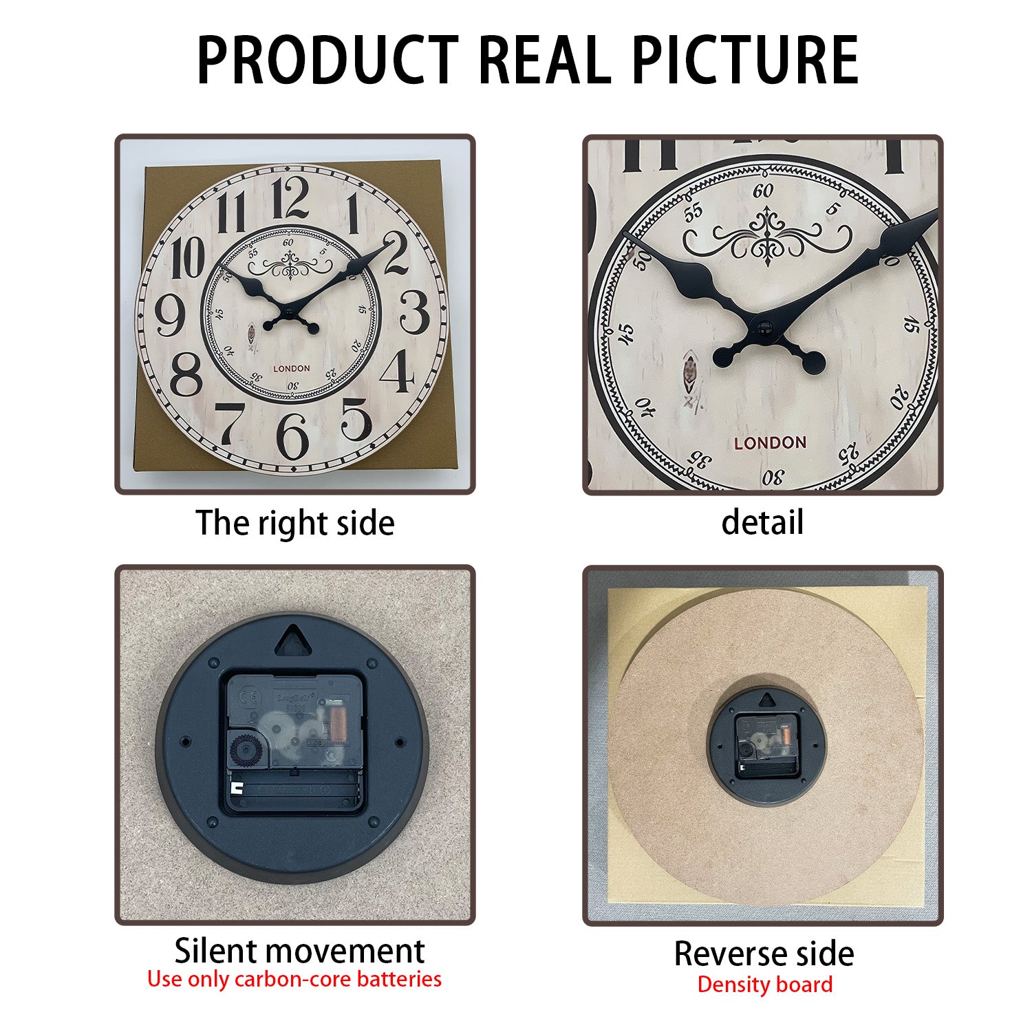 Vintage London Wooden Wall Clock Silent Non-ticking Battery Operated for Living Room