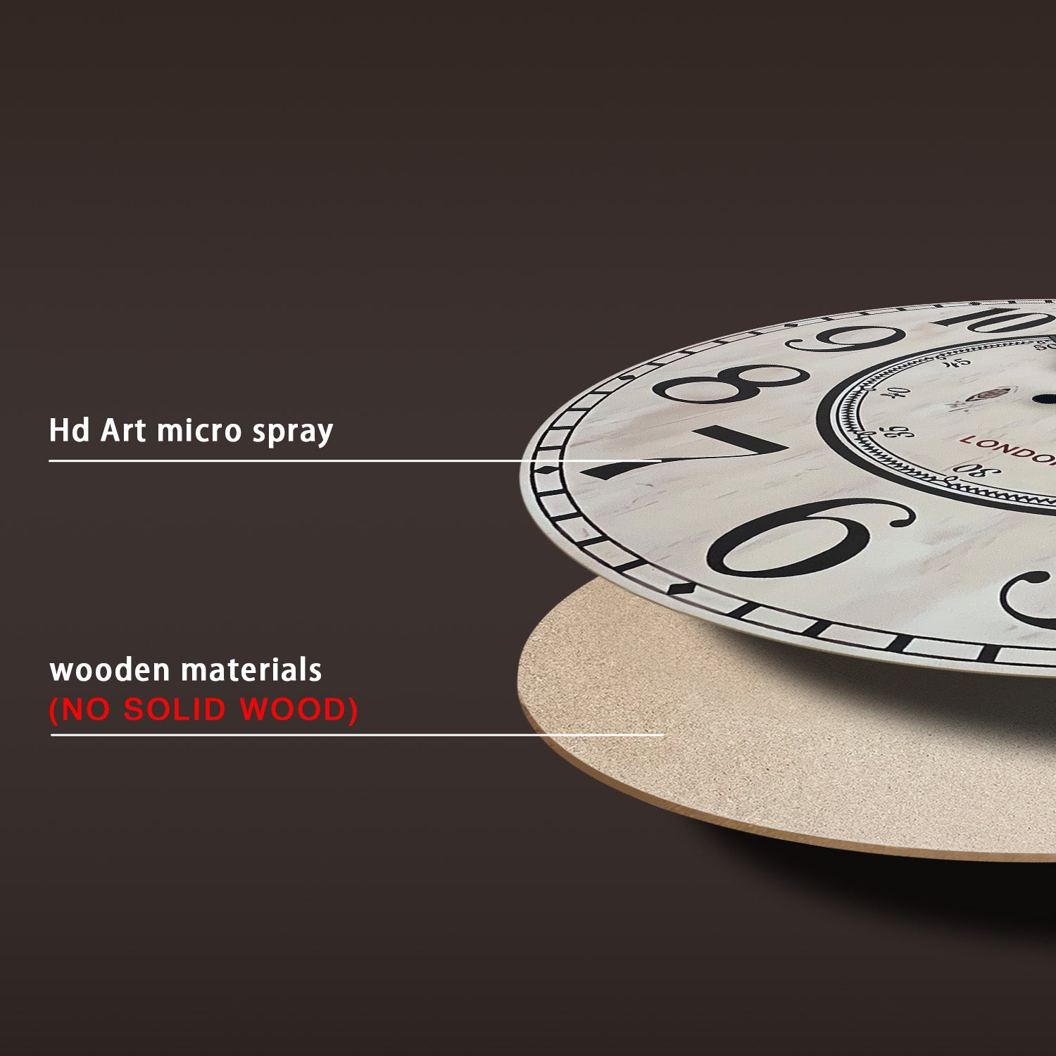 Made from high-quality MDF (Medium-Density Fiberboard), the clock is sturdy, smooth, and finely crafted. The textured print adds depth while maintaining a lightweight structure for easy hanging.